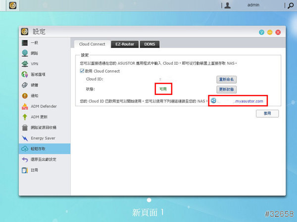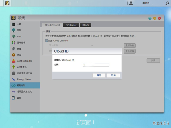 先點選「啟用 Clound Connect」接著輸入你想要設定的 ID 名稱,按下確定送出後,等待 Clound ID 註冊完成後,在底下看到「可用」的狀態就搞定摟!