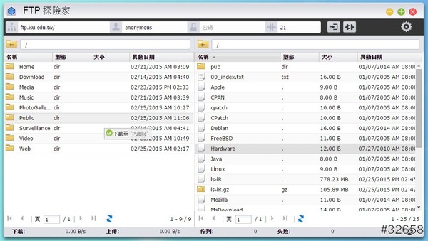 除了分享檔案, ASUSTOR 還提供了 「FTP探險家」用來方便下載及續傳其他 FTP 上的檔案。只要簡簡單單用拖拉的方式,就可以把對方 FTP 上的檔案下載到自己的 NAS 上。