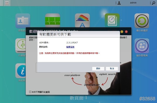 第一次執行 ADM 會自動判斷是否有新版本釋出並進行更新,為了 NAS 的安全性和系統穩定,更新到最新版是一定要的!