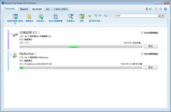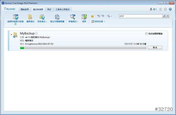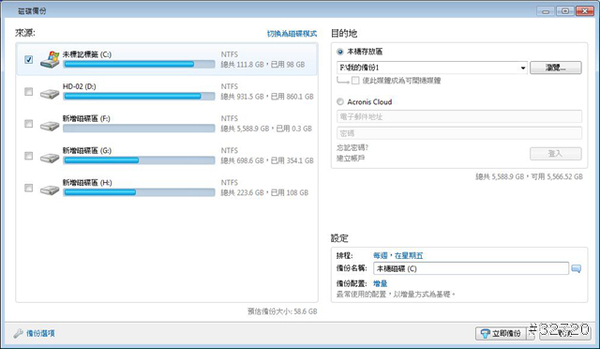 設定完成之後,點下立即備份。就會開始第一次的備份動作,因為檔案蠻大的,相對的備份時間也會比較久一些。不過 Acronis True Image 的檔案備份真的非常簡單,看過一次應該就會明白該如何設定自己需求的備份方式。