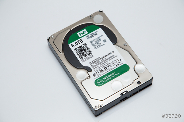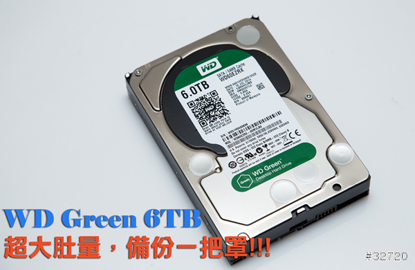 WD 綠標 6TB,型號是WD60EZRX。WD各系列的硬碟辨識非常簡單,只要看標籤就知道是什麼系列,綠標主要是以資料儲存為出發點設計。要使用這顆硬碟之前,可得要先看看你的主機版是否支援,還好我的電腦還算新接上之後抓取無誤。硬碟的快取有64MB,轉速為5700轉,看這個轉速就知道不是拿來當系統碟使用的,就是要讓你拿來平常備份資料使用。