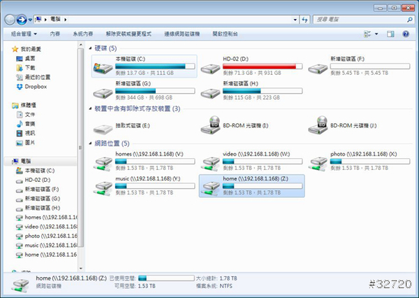 這是我目前使用的硬碟空間狀況,另外雖然標榜6TB因為電腦算法方式,實際上就是5.45TB的容量可以使用。