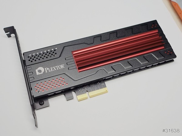拆掉靜電袋,正面是黑色霧面的散熱鋁殼搭配了大紅的散熱鋁鰭,一整