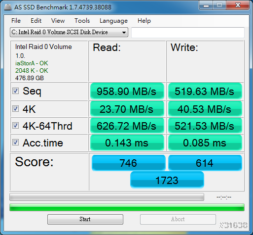 首先我們用很常見的一套軟體AS SSD Benchmark來測試一下。