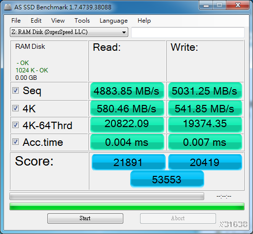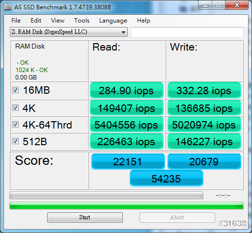 Ramdisk跑起分來果然強大,難怪以前記憶體還很便宜的時候,很多人組電腦會把