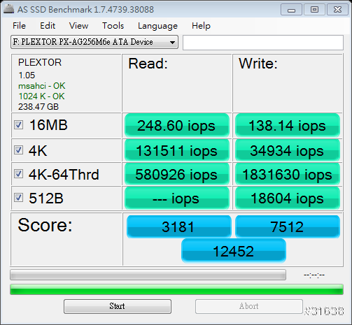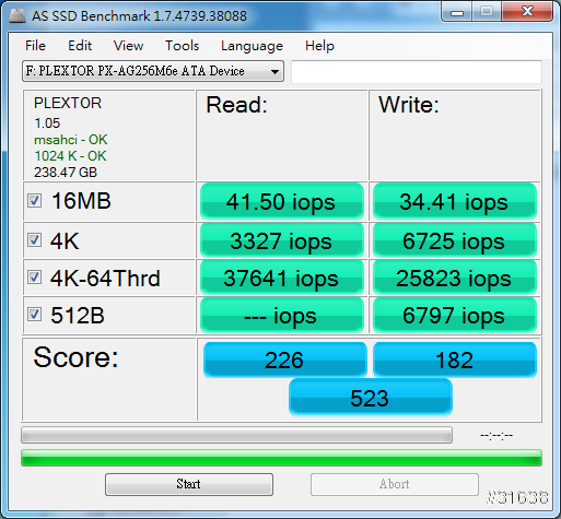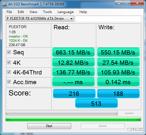 最後是我們挑戰者,M6e-BK的跑分(沒開PlexTurbo)。