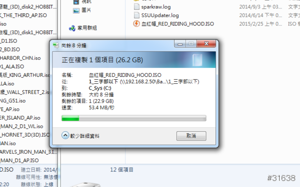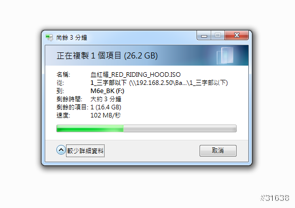 1. 網路傳檔測試:這邊小弟試著從NAS複製一個檔案過來到本地電腦,而其