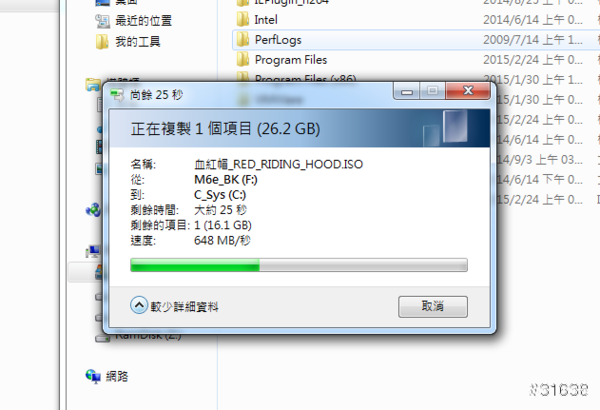 2. 檔案複製測試:這邊利用檔案在兩個硬碟間進行搬動。
