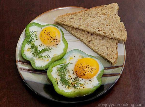 把蛋放進青椒裡面,好看又營養!是早午餐店都會出現的食物!