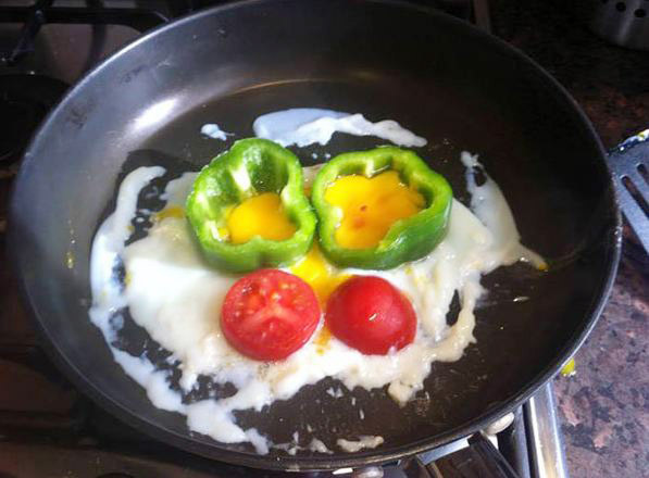自己要煎的時候,到底要怎麼樣才能讓蛋好好的呆在青椒裡面呢?