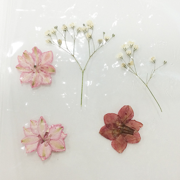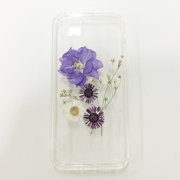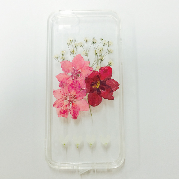 然後在壓花的"正面"也塗上透明指甲油後,黏在透明手機殼的"內層",記得不是黏在外面喔!