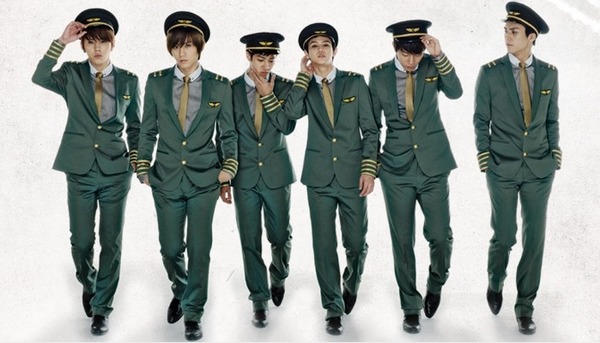 「BEAST」這套比較像機長的制服!明星果然異於常人啊!隨便站都像在拍畫報一樣。
