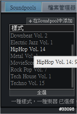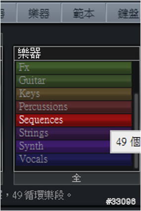 再點選旁邊的『樂器種類區』,有很多種不同類型的樂器: