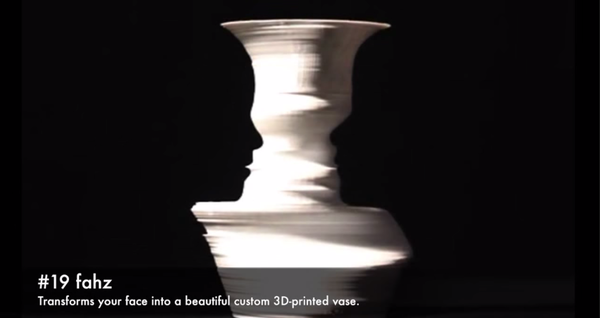 利用 3D 投影技術將臉孔的曲線製作成花瓶