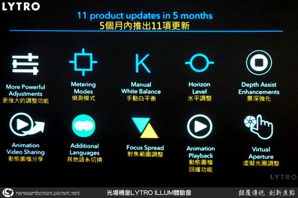 ▲LYTRO ILLUM光場相機在硬體與軟體的更新上,LYTRO已經在5個月內做出了11項的更新,可以說更新的速度很勤快了,代表著LYTRO ILLUM光場相機在未來技術的進步與設計的優化都會很快的推陳出新。