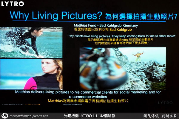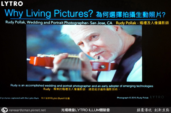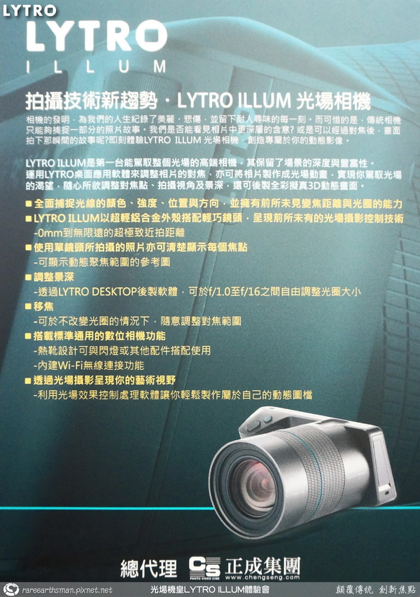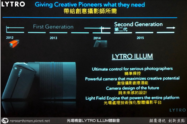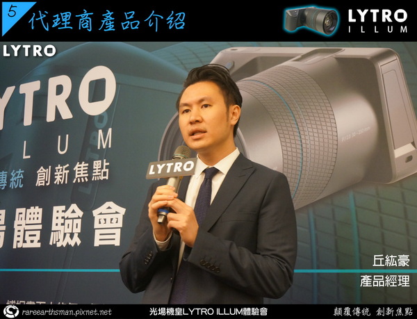 ▲LYTRO ILLUM光場相機的產品介紹由正成集團的產品經理丘紘豪先生來報告;丘經理也簡單的介紹了LYTRO這個品牌,"LYTRO"是由"Light"與"Control"所結合出來的,意思就是控制光線,來達到我們所想要的一些效果。