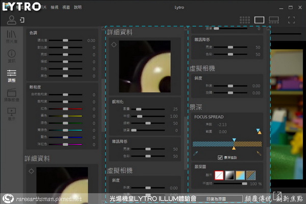 ▲以下照片以分享更多LYTRO ILLUM光場相機的機身照片,與分享更多LYTRO ILLUM光場相機的強大功能;在後製軟體的協助下可以改變光圈設定,也可以變更調整景深的範圍。