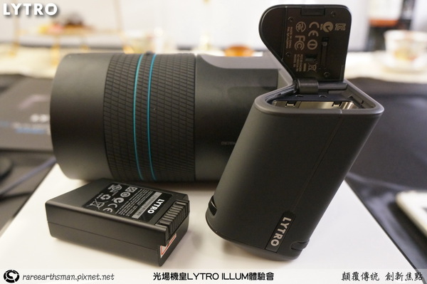 ▲LYTRO ILLUM的電池蓋開啟後可以發現電池蓋背面印上許多安規的認證Logo,而LYTRO ILLUM使用的是一顆可拆卸式的3.7V,3760mAh的鋰電池,詢問現場工作人員這顆電池可以撐多久,或拍多少張照片的電力,工作人員也無法回答,官網內也沒寫,這部分希望原廠及代理商能更新一下資料。