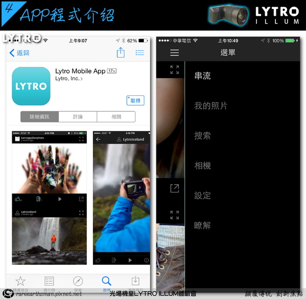 ▲Lytro Mobile App可以透過Wifi與Lytro相機做連接,然後將光場照片傳輸到手機上,現在Lytro Mobile App只能在iOS設備上使用,而且太舊的設備及系統版本都不能使用。