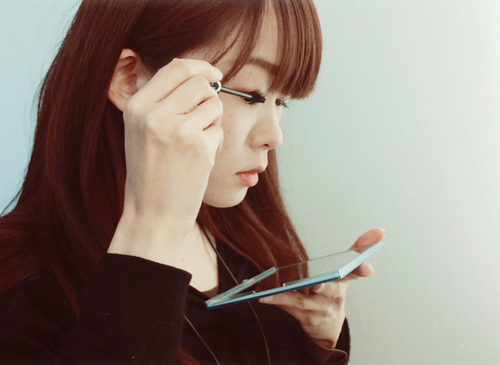 ● 塗睫毛膏時,鏡子應該放在下巴的下面。