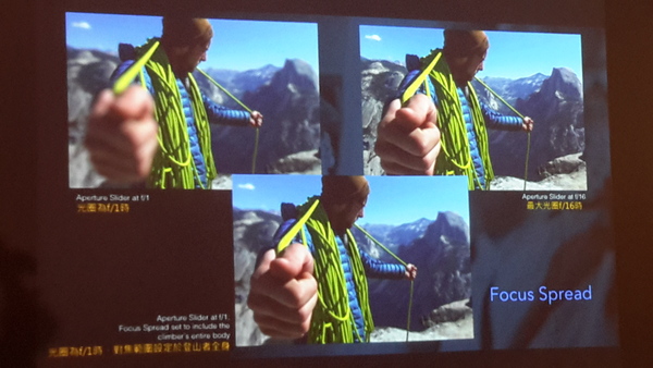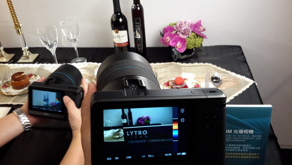 ILLUM有個特別的LYTRO按鈕, 按下時螢幕會出現參考圖, 藍色是前面對焦, 橘色是後面對焦, 在藍橘中間的範圍都是對焦點. 這得你實際去把玩才能體會.