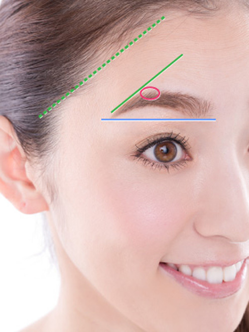 「眉尾」的部分則是要跟眉頭底部保持平行的狀態。