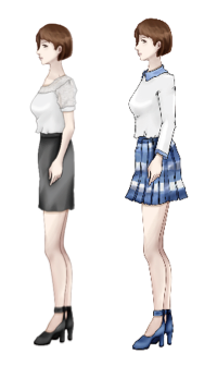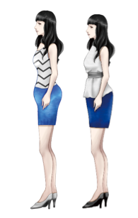▲ 圖說:(左)NG 服貼且緊身的窄裙款式,只會更加凸顯屁股扁塌的問題,加以深色所營造的視覺收縮,讓臀型無法獲得修飾。 (右)OK 透過有皺摺設計的裙款,增加裙子的蓬度,連帶也能塑造豐盈的臀型。