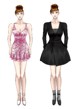 ▲ 圖說:NG(左) 材質柔軟且貼身的洋裝或裙款,容易貼合身型,無法順利修飾小腹突出的問題。 (右)OK 改選擇質料較挺的裙子,並利用下襬略長且成傘狀的上衣遮蓋,就能有效加以修飾腹部線條。