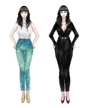 ▲ 圖說:NG(左)屁股寬大的女孩,若穿著淺色、具有刷色且貼身的褲款,容易更加突顯身形缺點。 (右)OK 改穿硬挺的傘狀圓裙,能有效弱化屁股線條,達到縮臀的目的。