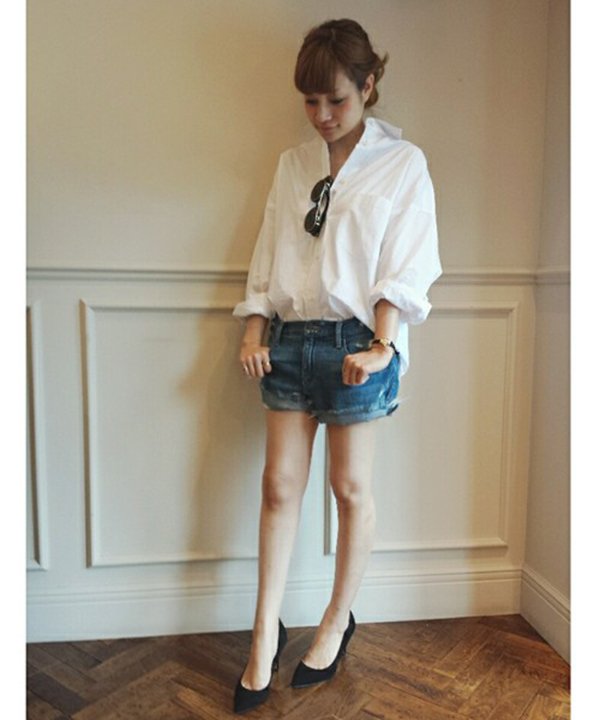 但大家要記得再搭配牛仔短褲的時候,要將衣服微微地紮進去,會比較好看喔!