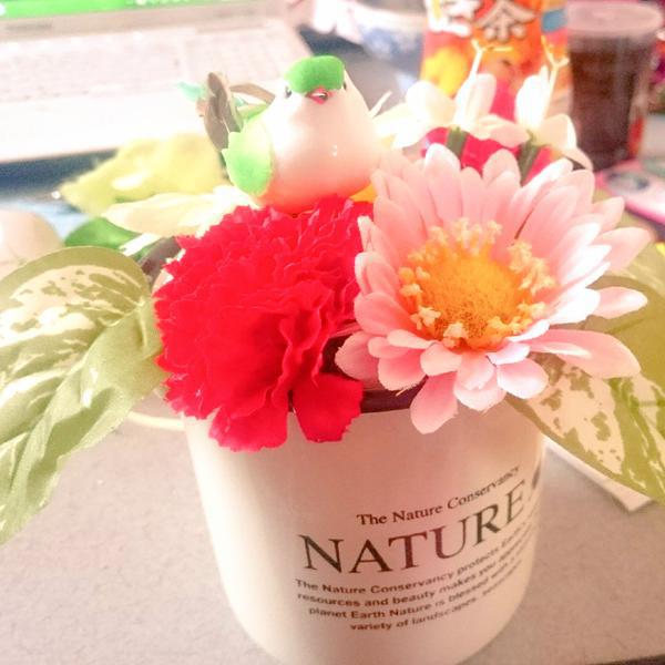 也可以將康乃馨和其他人造花放在一起,讓花盆看起來不那麼單調。