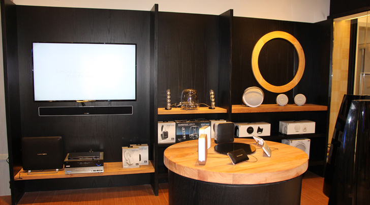 而電視下方的則是大家都好奇詢問的Harman Kardon SB-35 SoundBar,店家說預計7月後將會開賣