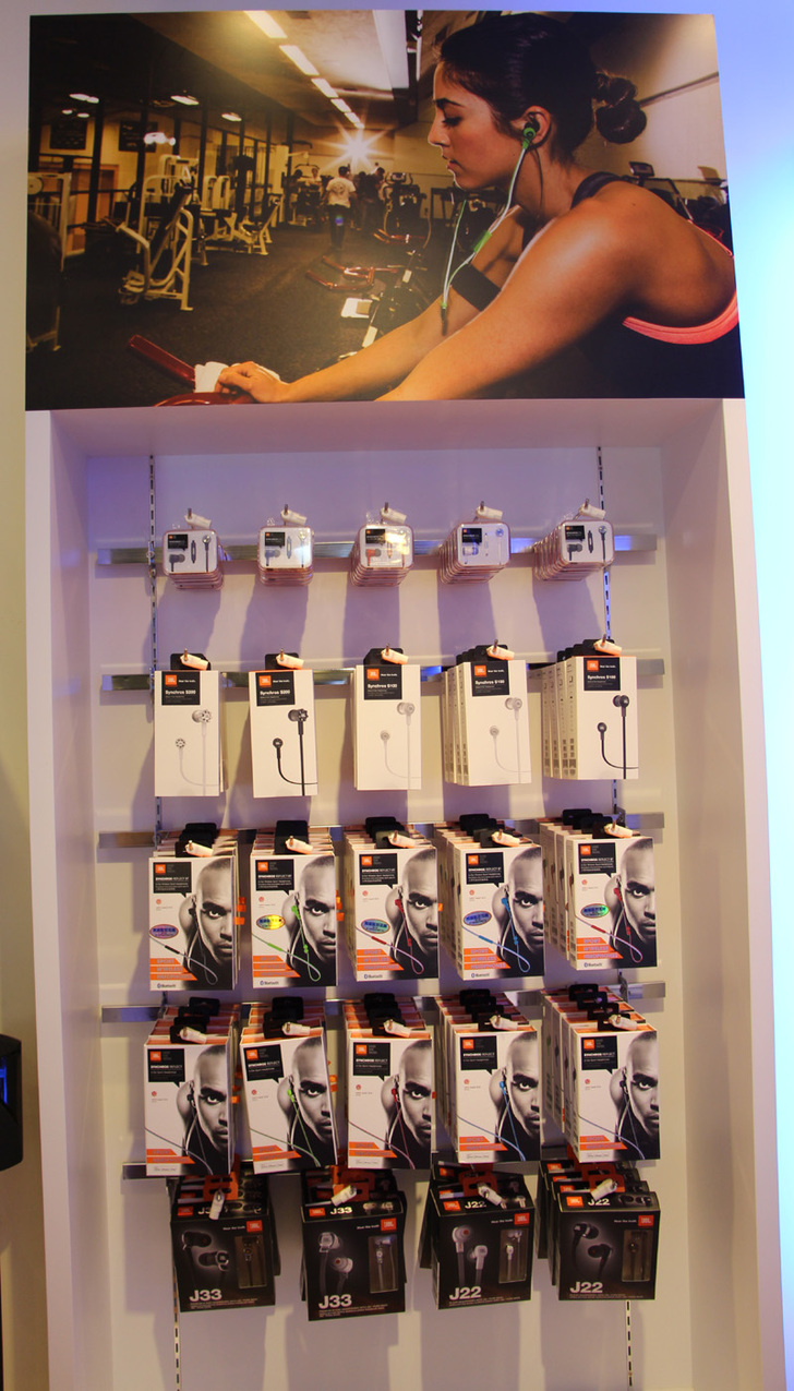 這是JBL入耳式耳機產品展示區,採吊卡陳列方式;如果有興趣可以請熱心的服務人員介紹產品~(那個運動型的Reflec BT耳機我也有,真的蠻不賴的)