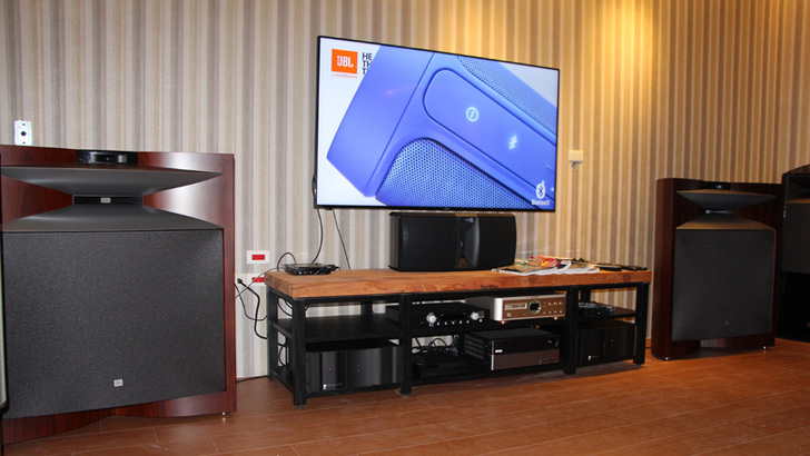 我覺得這邊最特別的是,有將JBL不少發燒等級的喇叭與擴大機等設備陳列出來(JBL 4312E大書架喇叭,以及落地型的TS-6000 & TS-8000),有興趣的話也可作在沙發上試聽音一下二聲道或家庭劇院系統震撼的音場