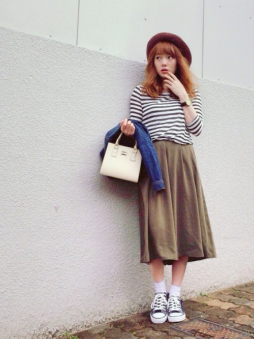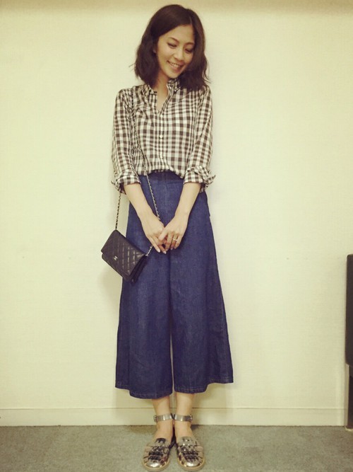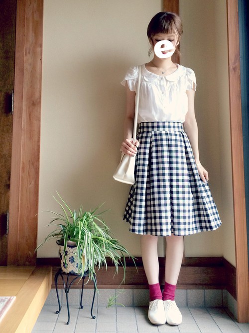 粗格紋的下半身,配上素色上衣,新手也可以好好消化的搭配