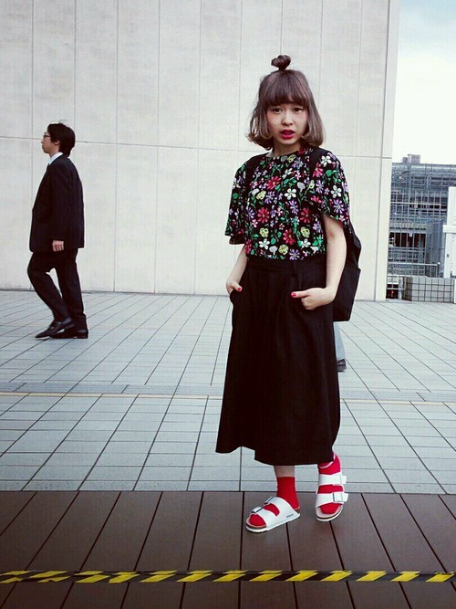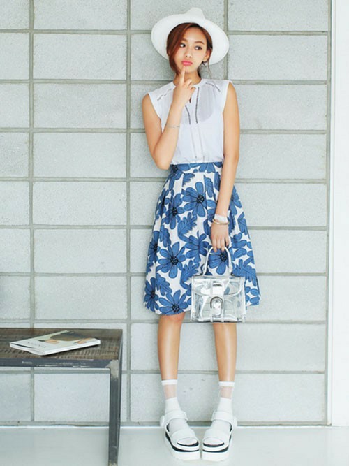上衣選擇碎花圖案時,記得要搭配下半身色系