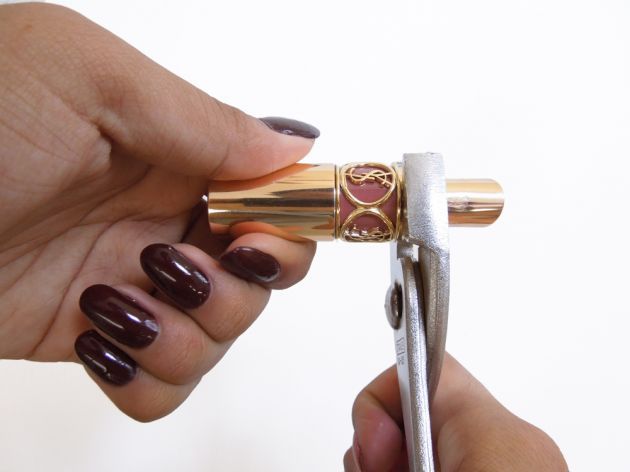 步驟一、先用鉗子將口紅外層的那塊金屬分開。
