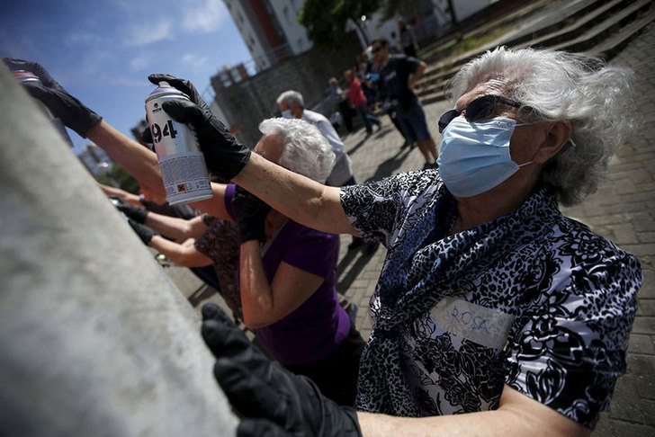你看,爺奶可是畫得不亦樂乎,誰說街頭塗鴉有年齡限制呢!?