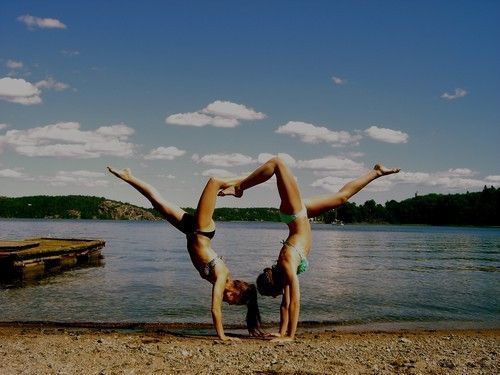 首先兩個人筋骨要夠軟Q,手牽手還得同時跳起到同一個高度