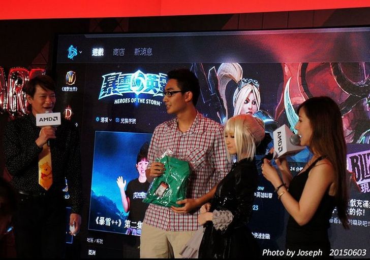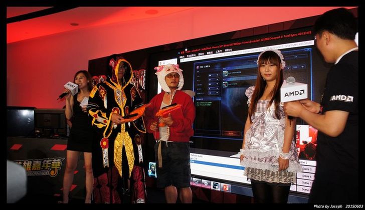 而又是PK賽中場休息的時間 ,便是另一段節目"熱血AMD",這段節目主要是為了嘉年華裝扮競賽,每個參與此次盛會的英雄成員可以COSPLAY裝扮 ,然後來票選最佳COSPLAY玩家 ,此次有三位分別扮演 聖騎士、 喜羊羊、 女僕 三位角色