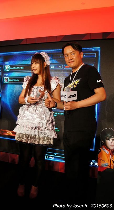在經過一番的激烈票選活動之後,結果是由扮演女僕的網友獲得勝利(該說這是女性保障名額嗎,呵~ 應該是現場的玩家大部份都是男性的關系吧,所以大家都很喜歡女僕的COSPLAY ),是由 Johnny來頒發獎品,WOW又是一顆AMD 最新的頂級 APU A10-7870K