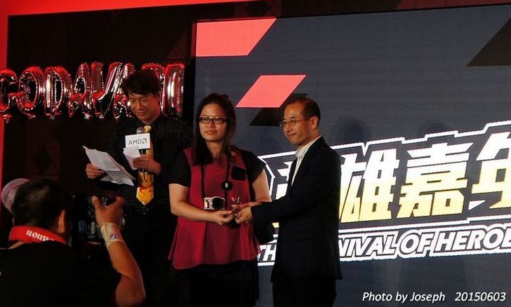 在此段結束之後,便是要發表AMD 神攝手競賽的結果了,由可以在Facebook 上拿到最多讚的PO文可以獲勝,結果是由這位女性英雄成員來取得最後勝利(她拿到了29個讚,結果是因為在上面寫了展元好帥的關系,哈哈),也因此可以得到AMD A10-7870K CPU獎品