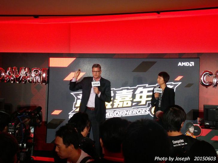 在主持人簡短的開場後,接下來首先就是由AMD全球副總裁兼大中華區董事總經理潘曉明作簡短致詞 ,再來則是AMD全球公關副總裁John Taylor致詞 。今年AMD在Computex 這段期間發表了最新的APU Carrizo ,對於新的APU產品,AMD可是寄以厚望,希望能在近年來火熱的PC電競市場與INTEL一較高低。