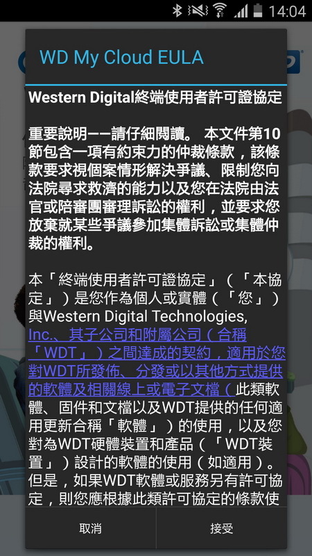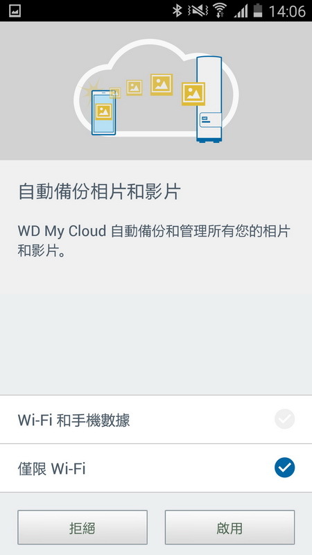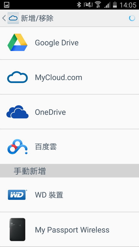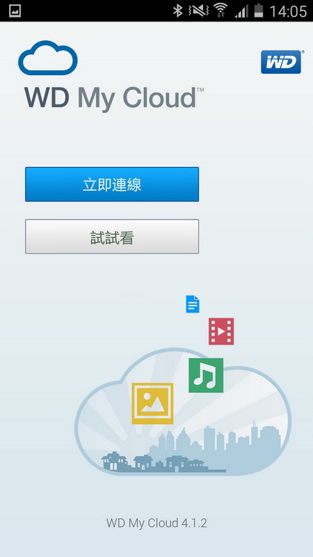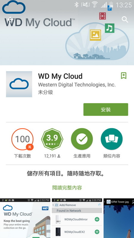 ▼ 智慧型裝置要連接機器,必須先下載 WD My Cloud。