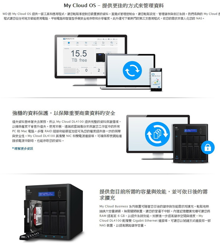 ▼ WD My Cloud Business DL4100 16TB(4TBx4) 3.5吋NAS伺服器硬碟(WDBNEZ0160KBK-SESN)
