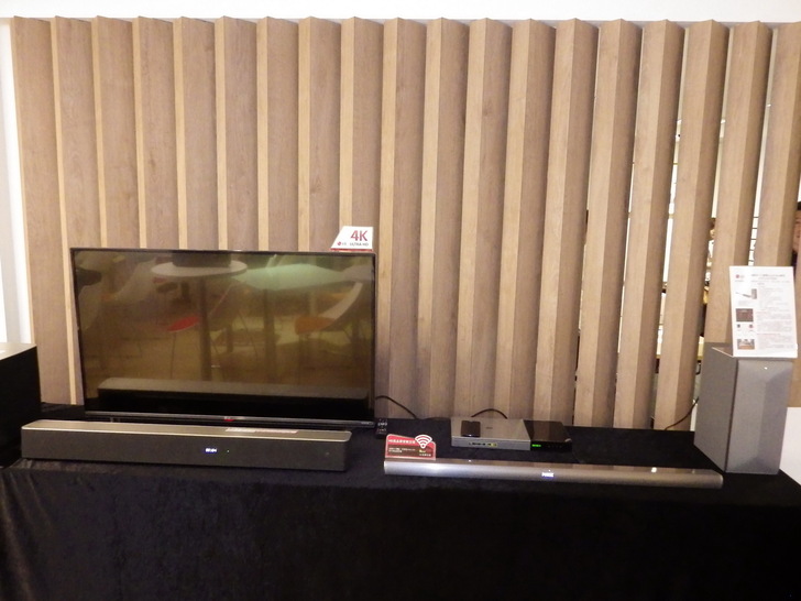 在會場中,也介紹了無線的soundbar,頓時間成了家庭劇院