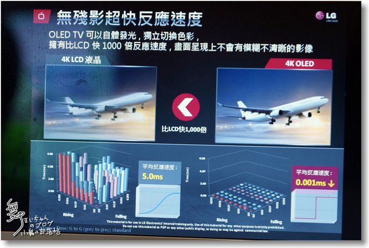▲而OLED第二項特色就是超快的反應速度,比液晶電視的反應速度快達千倍;平均反應速度低於0.001ms,讓畫面呈現更清楚不易模糊。