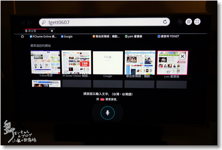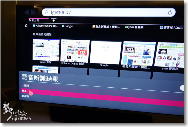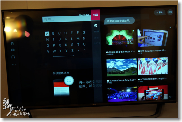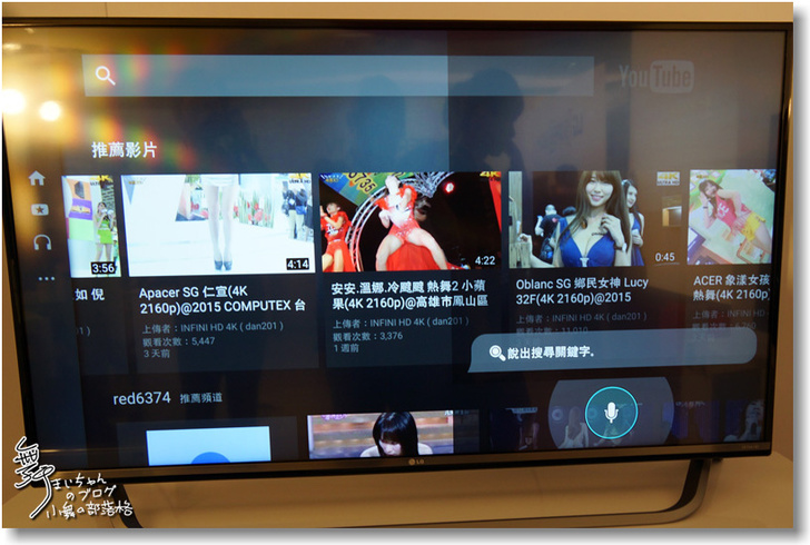 ▲而SMART TV在上網也增加聲控功能,透過搖控器上的麥克風用說的,就能關鍵字快速搜尋想要的內容。