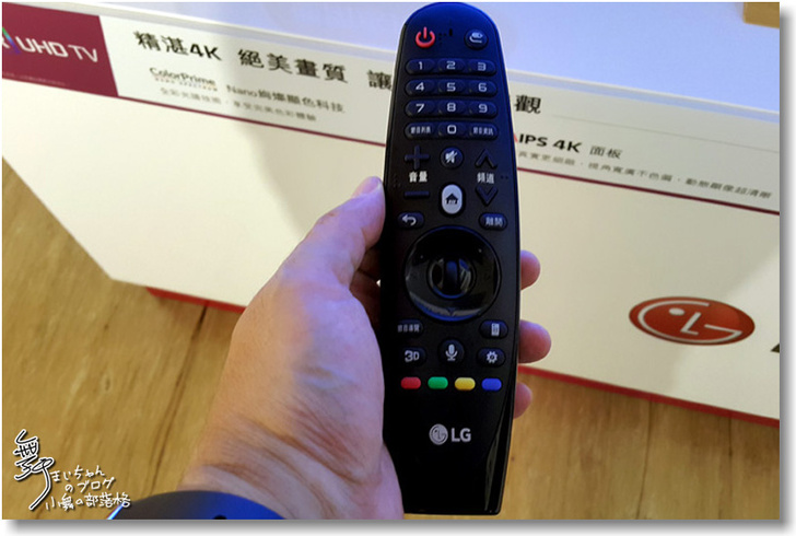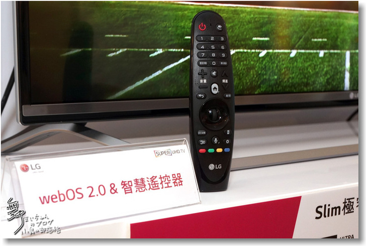 ▲LG今年也推出全新的智慧搖控器,除了聰明智慧功能,也能直接數字選台,並能多合一整合操控,特別的外觀設計還能直接直立放置於桌上。