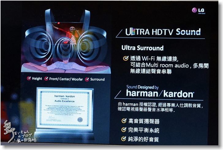 ▲接著談到音效部份,LG Super UHD TV通過Harman/Kardon認證,且是唯一經過第三方公正單位認證,擁有最佳的音質。